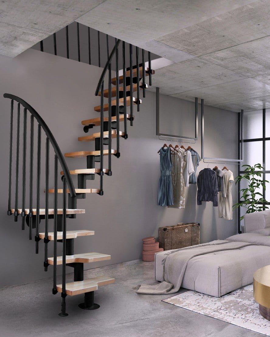 Mini Milano – tai modernus sprendimas mažoms erdvėms, išsiskiriantis 90° kampu pasukta konstrukcija su patogiu podestu (aikštele). Podestas padidina naudojimo komfortą, tačiau pati konstrukcija išlieka kompaktiška ir reikalaujanti minimalios vietos. Laiptai puikiai tinka loftams, palėpėms, mansardoms ir sodo nameliams. Medinės pakopos turi ergonomišką formą, kuri pagerina judėjimo patogumą.