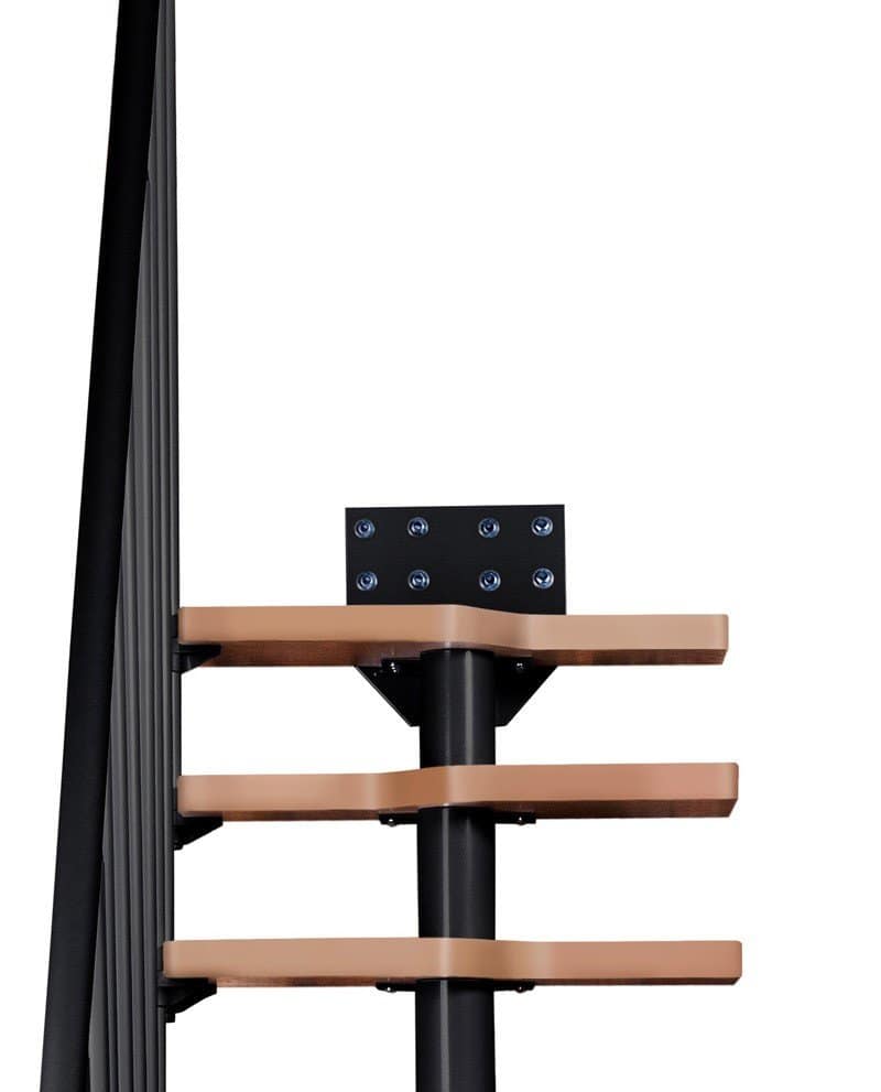 Papildomai šio modelio turėklas suformuotas iš tankiai išdėstytų vertikalių stulpelių – tai padidina saugumą ir suteikia laiptams modernią išvaizdą.
