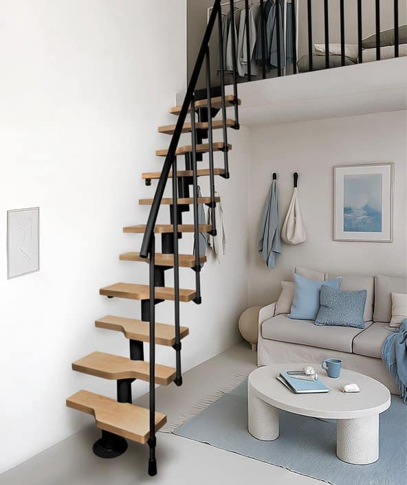 Siekiant dar didesnio patogumo lipant aukštyn ir žemyn, pakopos turi specialiai pakeistą formą – išpjovą, kuri pagerina judėjimo komfortą. Laiptus galima montuoti tiek tiesiu bėgiu, tiek su posūkiu (į kairę arba į dešinę). Loftis Mini – tai ekonomiškas ir praktiškas sprendimas tarp modulinių laiptų: mini laiptai – mini kaina.